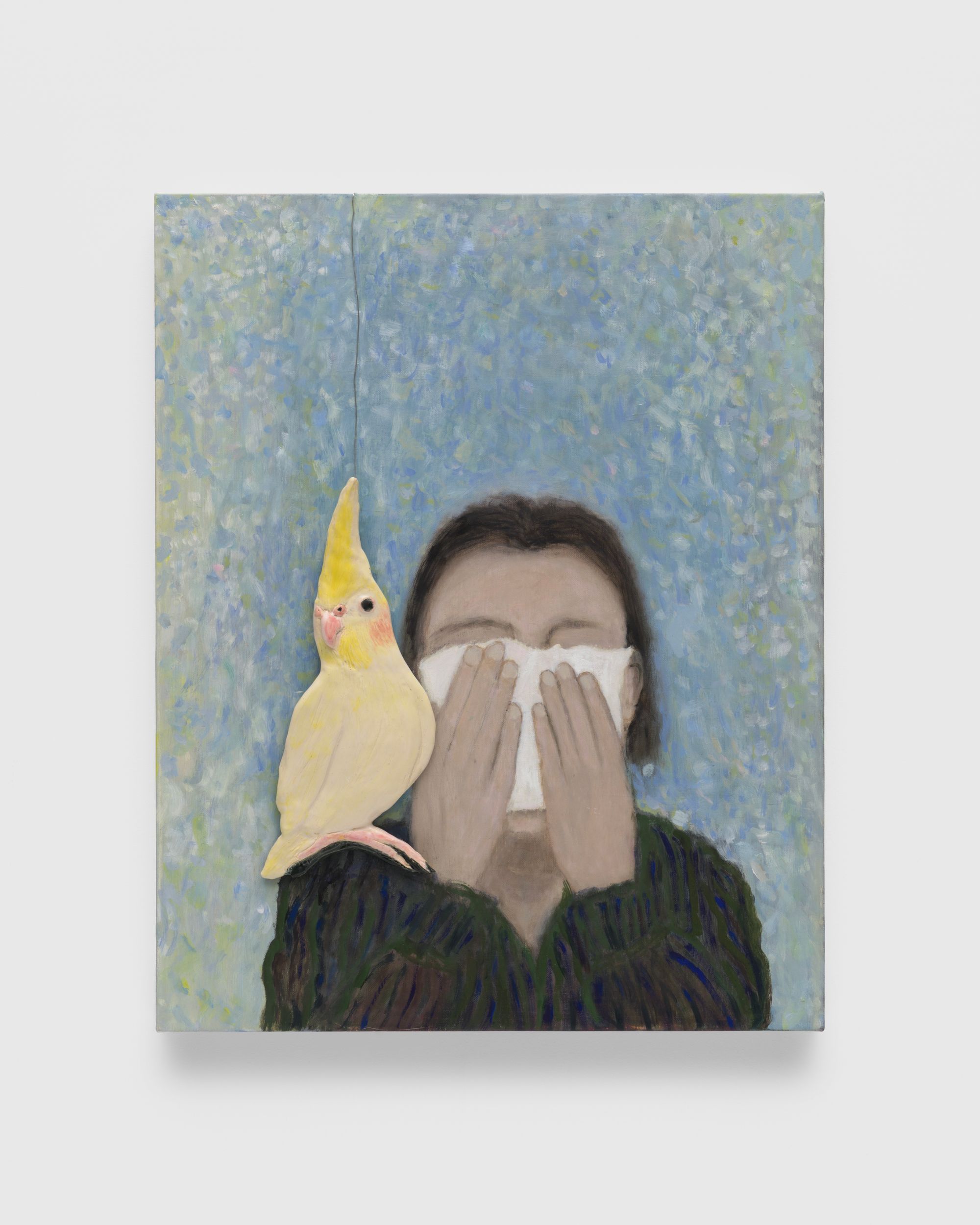 Oil on canvas, glazed ceramic, wire