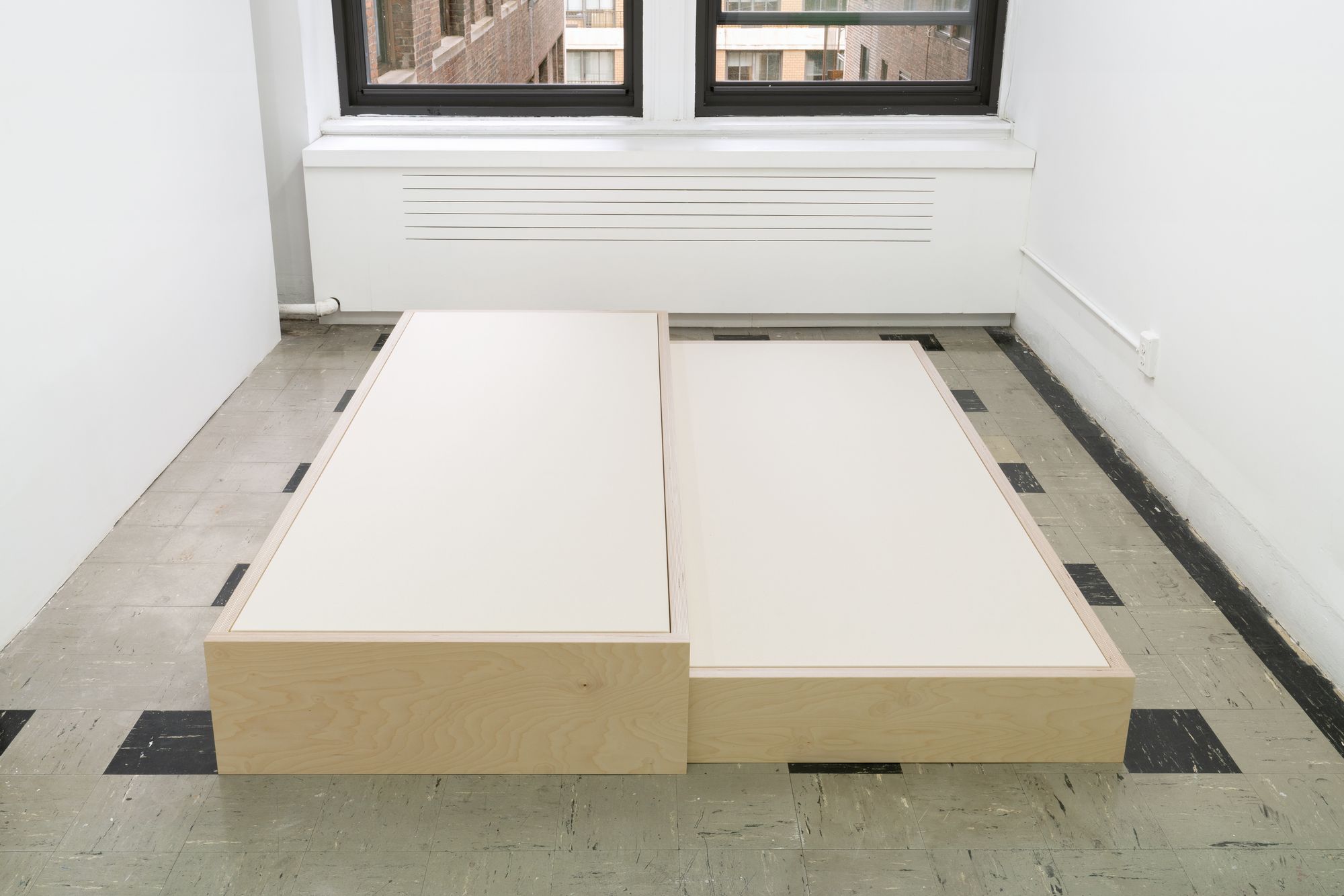 In thinking through the parameters, aspirations, and deficiencies of a framework, we have revisited Rosalind Krauss's essay “Grids,” first published in 1985. We have re-presented these ideas in sculptural allusion and transposed methodology. However, full resignation to Krauss’s grid, as practice, is a misnomer when using forensic study towards conflicting recollections of it. The grid is a tool of self-aware sequencing, of sounding reverberations, repeating back to us the echoes of historical etymology: of mediums and medians and co-medians even. In our continuation of practicing the various histories of the grid, we find that we are at odds with the event of it. As Krauss suggested, “The grid marked the present and proclaimed everything else as past.”