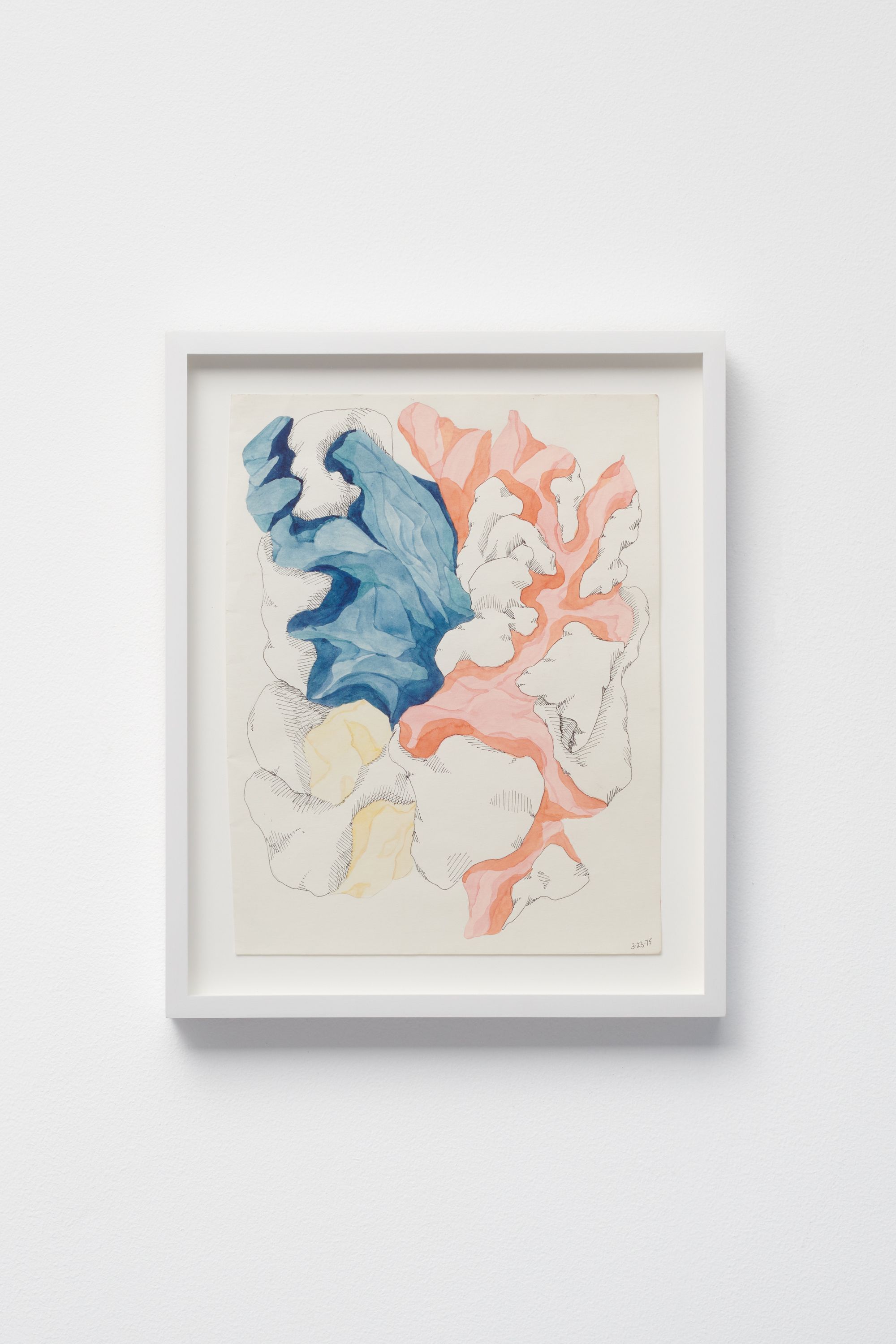 This selection of drawings from 1972 to 1976 captures Mayer’s lifelong and entwined fascination with fabric and flowers, drawn both from life and imagined. These materials and motifs enter into formal dialogue in Mayer’s work, and begin to resemble one another through shared attributes, like ridges, scallops, folds. These forms also create an impression of corporeal monumentality, pointing to the artist’s interest in the body and the interplay of its presence and absence.
